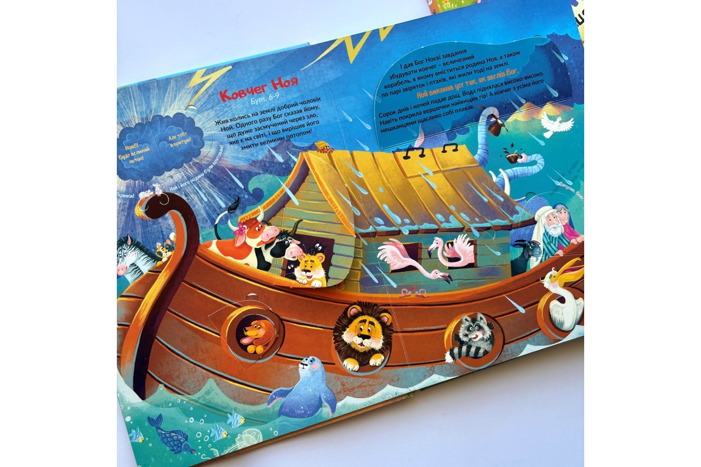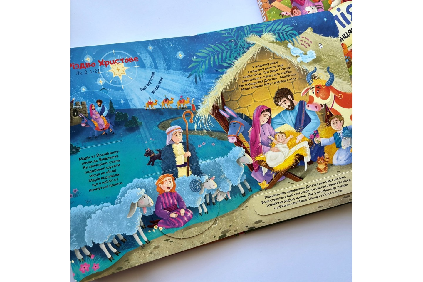 Яскрава інтерактивна книга, що знайомить дітей із найвідомішими біблійними історіями у простій та зрозумілій формі. Віконця, які можна відкривати, допомагають краще засвоювати сюжет, розвивають цікавість, дрібну моторику та увагу, перетворюючи читання на захопливу гру.