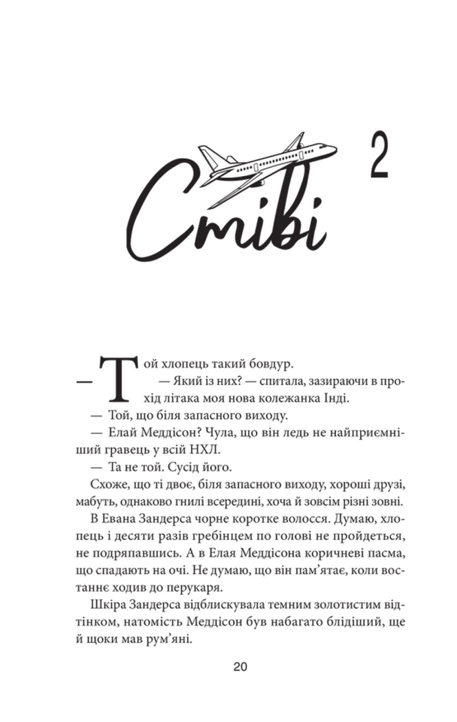 Стіві — бортпровідниця, яка живе між рейсами, містами й короткими зустрічами. Вона звикла до свободи, незалежності та відсутності серйозних зобов’язань. Її життя — це постійний рух, у якому немає місця для глибоких почуттів. Єван Зандерс — зірка хокейної команди з Чикаго. Він харизматичний, впевнений у собі й звик отримувати все, чого бажає. Але за його зовнішньою легкістю приховується складне минуле та внутрішні демони. Їхня зустріч стає початком історії, яка змінює обох. Спочатку це лише гра, пристрасть і легкий флірт, але з кожною новою зустріччю між ними виникає щось глибше. Та чи готові вони впустити одне одного у своє життя по-справжньому? І чи вистачить сил подолати страхи, біль і сумніви, щоб зберегти те, що між ними виникло? Це емоційна історія про кохання, яке народжується несподівано і змушує змінюватися, ризикувати та відкриватися назустріч почуттям.