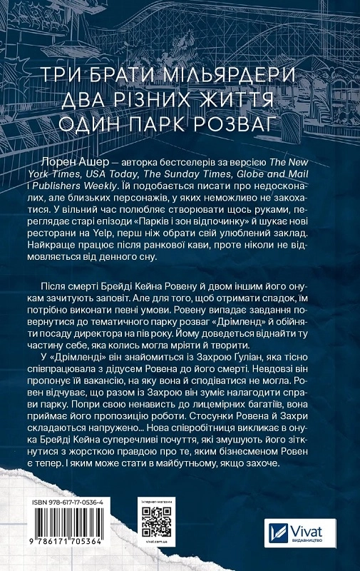 Увага! Продукція сексуального характеру або інша продукція з віковим обмеженням. Продаж неповнолітнім заборонено. Продаж відповідно до вікового обмеження. • Перша частина трилогії «Мільярдери з Дрімленду»! Кожна книга є самостійною історією онуків Брейді Кейна: Ровена, Деклана й Каллагана • Рейтинг 4.2 на Amazon та 3.85 на Goodreads Після смерті Брейді Кейна Ровену й двом іншим його онукам зачитують заповіт. Але для того, щоб отримати спадок, їм потрібно виконати певні умови. Ровену випадає завдання повернутися до тематичного парку розваг «Дрімленд» й обійняти посаду директора на пів року. Йому доведеться віднайти тут частину себе, яка колись могла мріяти й творити. У «Дрімленді» він знайомиться із Захрою Ґуліан, яка тісно співпрацювала з дідусем Ровена до його смерті. Невдовзі він пропонує їй вакансію, на яку вона й сподіватися не могла. Ровен відчуває, що разом із Захрою він зуміє налагодити справи парку. Попри свою ненависть до лицемірних багатіїв, вона приймає його пропозицію роботи. Стосунки Ровена й Захри складаються напружено… Нова співробітниця викликає в онука Брейді Кейна суперечливі почуття, які змушують його зіткнутися з жорсткою правдою про те, яким бізнесменом Ровен є тепер. І яким може стати в майбутньому, якщо захоче.