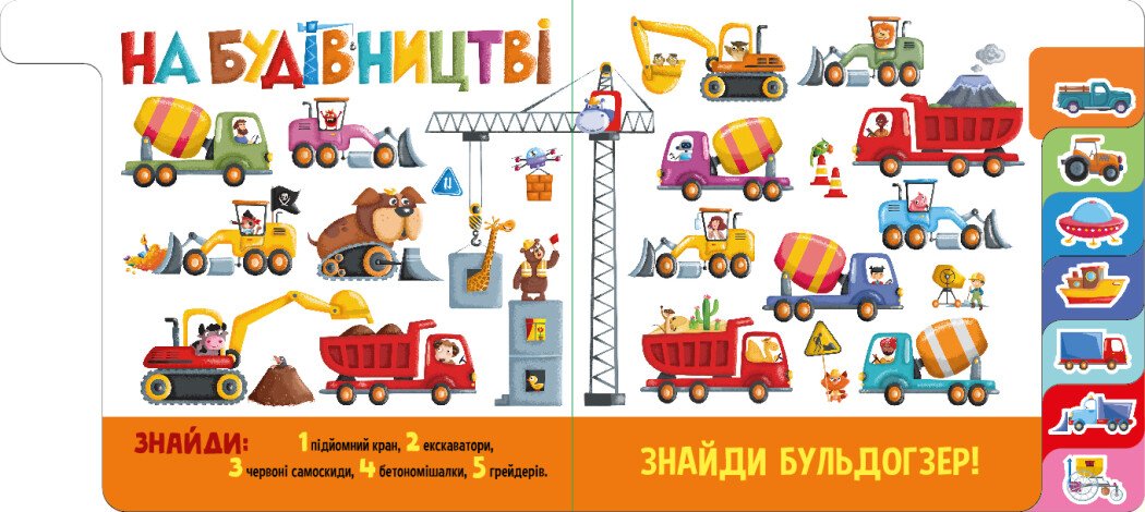 Яскрава розвивальна книжка-вімельбух про різні види транспорту, яка допомагає малюкові вивчати нові слова, тренувати увагу та розглядати деталі у форматі гри.