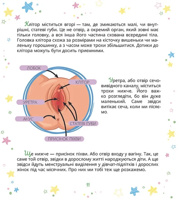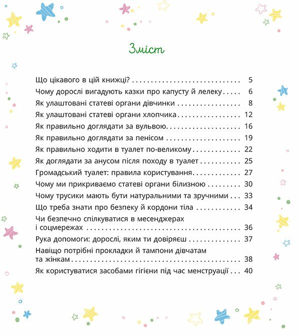 «Малечі про інтимні речі» — це пізнавальна дитяча книга, створена для того, щоб допомогти батькам спокійно та правильно говорити з дітьми на важливі теми. У ній простою мовою пояснюється будова тіла, фізіологічні процеси, правила інтимної гігієни, поведінка в туалеті та громадських місцях, а також основи безпеки та особистих кордонів. Книга відповідає на запитання, які часто виникають у дітей: звідки беруться малюки, що таке менструація чи ерекція, чому важливо дбати про чистоту та як захищати себе в реальному житті й інтернеті. Яскраві ілюстрації, доброзичливий тон і чіткі пояснення допомагають дитині краще зрозуміти себе та світ навколо, а батькам — побудувати довірливу розмову без сорому й страху.