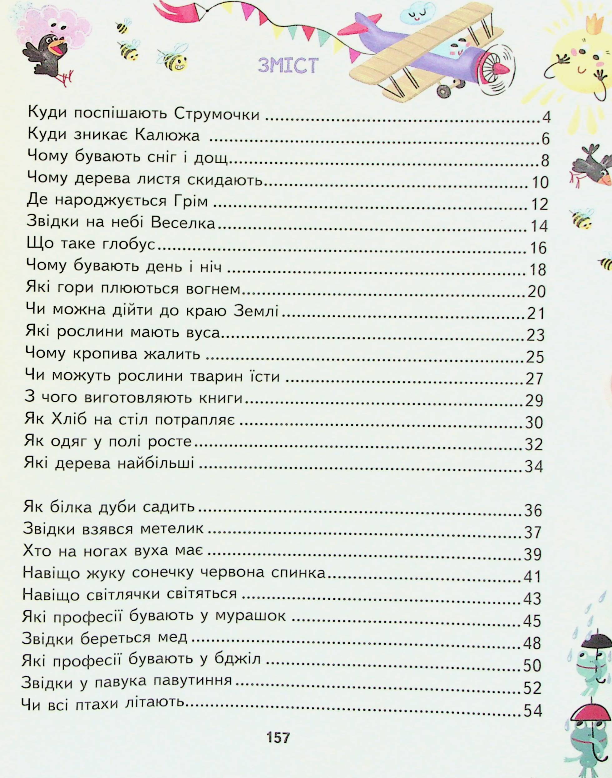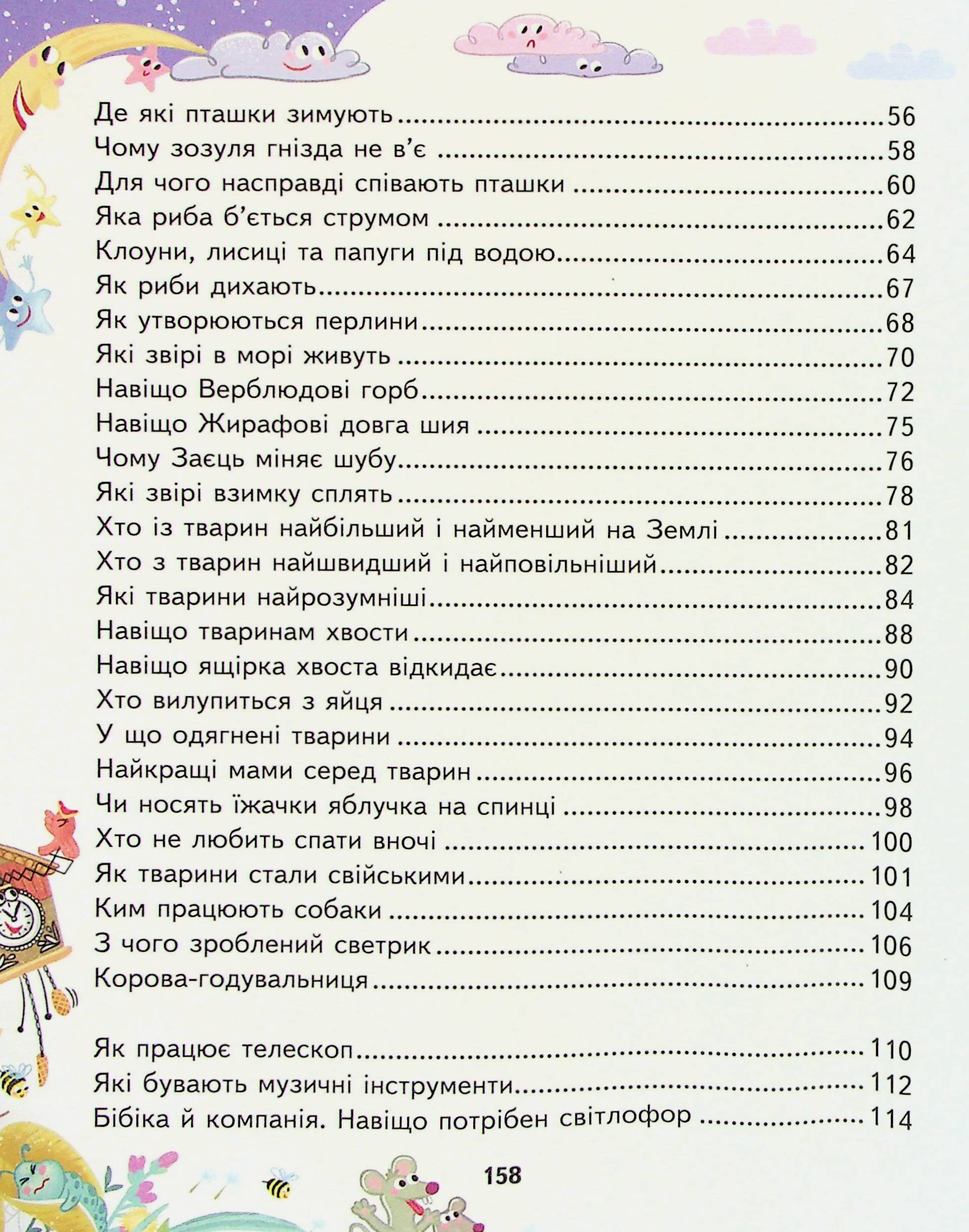 Захоплива енциклопедія у форматі казок, яка просто й цікаво відповідає на важливі дитячі запитання про світ навколо. Книга допомагає розвивати допитливість, уяву та пізнавальний інтерес, знайомить із природними явищами, тваринами, транспортом і багатьма іншими темами у легкій і доступній формі.