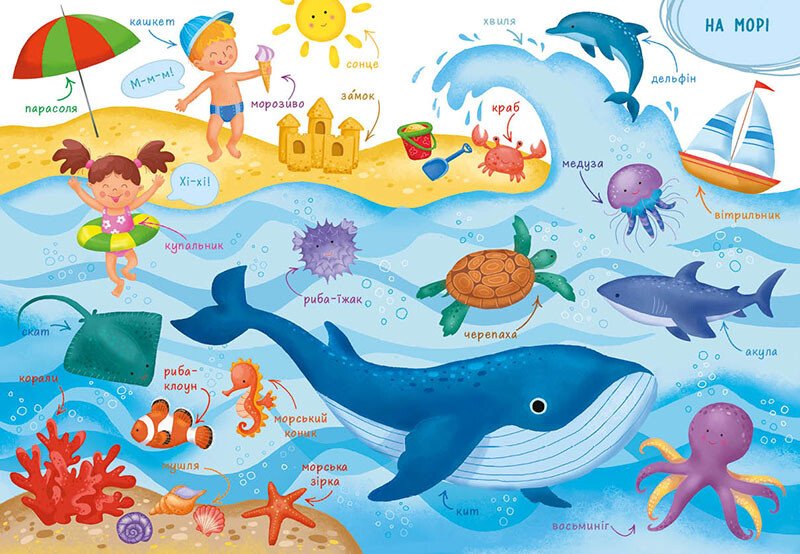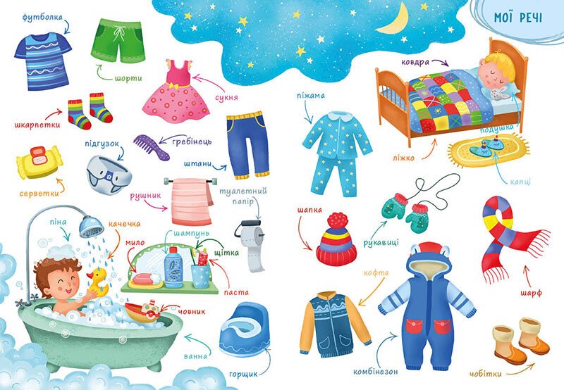Яскрава розвивальна книжка-картонка для найменших, яка допоможе дитині вивчати перші слова та пізнавати навколишній світ через кольорові ілюстрації.1+ (для дітей від 1 року)