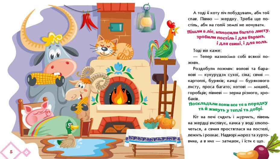 Добра українська народна казка про дружбу, взаємодопомогу та спільну працю, подана у яскравому дитячому оформленні. Веселі ілюстрації та простий текст допомагають малюкам легко зануритися в сюжет і розвивають інтерес до читання.