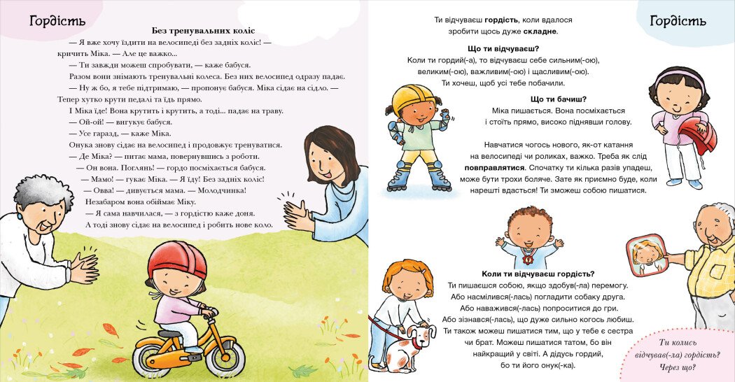 Пізнавальна книжка для дітей, яка допомагає розпізнавати та називати свої емоції. У доступній формі пояснює, що таке радість, сум, злість чи страх, і вчить говорити про почуття та розуміти інших.