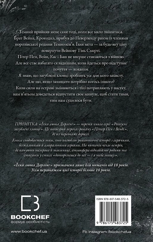 Темна й пристрасна історія у світі Неверленду, де казки давно втратили свою невинність. Він — один із загублених хлопців, небезпечний і безжальний. Вона — дівчина, яка може змінити все… або знищити їх усіх.